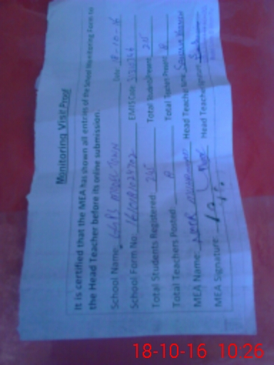 | Certified that this School was Inspected by the Undersigned MEA/DMO Today and the Information Stated Above is as Per Record. | |||||
