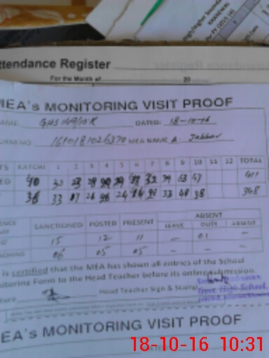 | Attendance Register | Head Teacher | MEA with School | Visit Proof |