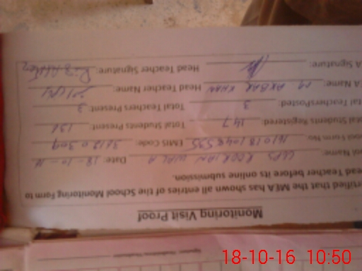 | Certified that this School was Inspected by the Undersigned MEA/DMO Today and the Information Stated Above is as Per Record. | |||||