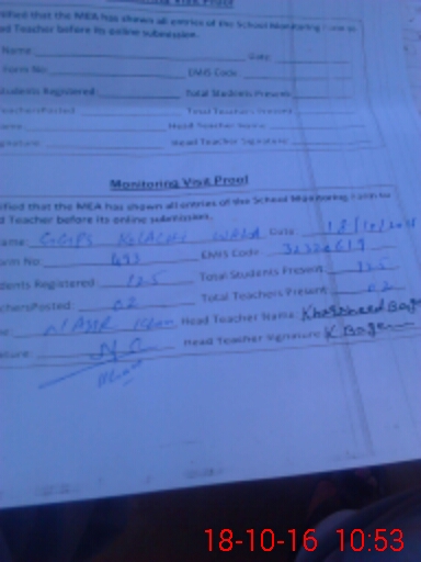 | Certified that this School was Inspected by the Undersigned MEA/DMO Today and the Information Stated Above is as Per Record. | |||||
