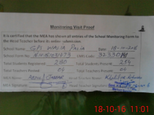 | EMIS Code: 32330141 | Name of School: GPS WALIA PALIA | |||