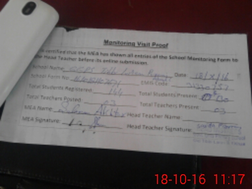 | Attendance Register | Head Teacher | MEA with School | Visit Proof |