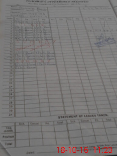 | CNIC | Full Name | Designation | R/C | Absence During Last Calender Month |