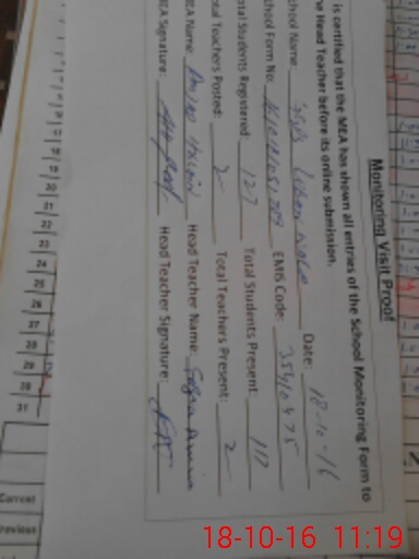 | Certified that this School was Inspected by the Undersigned MEA/DMO Today and the Information Stated Above is as Per Record. | |||||