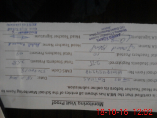| Certified that this School was Inspected by the Undersigned MEA/DMO Today and the Information Stated Above is as Per Record. | |||||