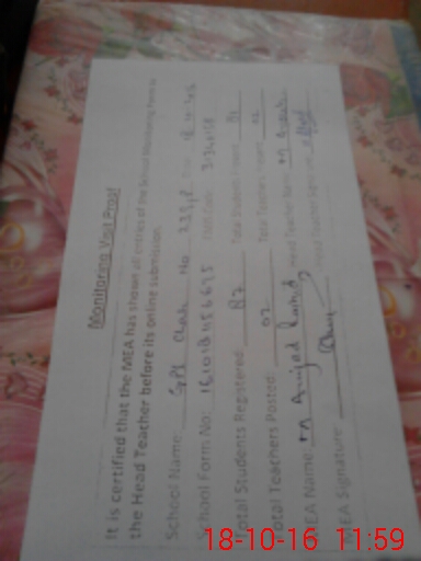 | Certified that this School was Inspected by the Undersigned MEA/DMO Today and the Information Stated Above is as Per Record. | |||||