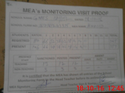 | Certified that this School was Inspected by the Undersigned MEA/DMO Today and the Information Stated Above is as Per Record. | |||||
