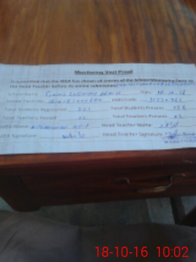 | Attendance Register | Head Teacher | MEA with School | Visit Proof |
