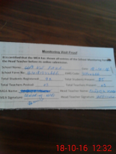 | Certified that this School was Inspected by the Undersigned MEA/DMO Today and the Information Stated Above is as Per Record. | |||||