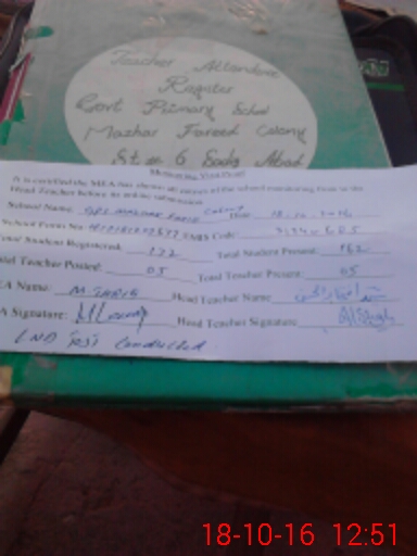 | EMIS Code: 31340685 | Name of School: GPS MAZHAR FARID COLONY | |||