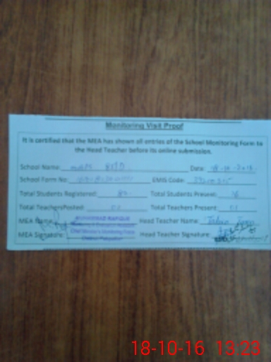 | Certified that this School was Inspected by the Undersigned MEA/DMO Today and the Information Stated Above is as Per Record. | |||||
