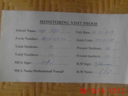 | Certified that this School was Inspected by the Undersigned MEA/DMO Today and the Information Stated Above is as Per Record. | |||||