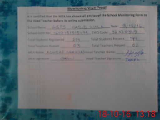 | EMIS Code: 32320349 | Name of School: GGPS HABIB WALA | |||
