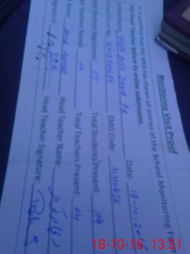 | Certified that this School was Inspected by the Undersigned MEA/DMO Today and the Information Stated Above is as Per Record. | |||||