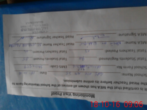 | Certified that this School was Inspected by the Undersigned MEA/DMO Today and the Information Stated Above is as Per Record. | |||||