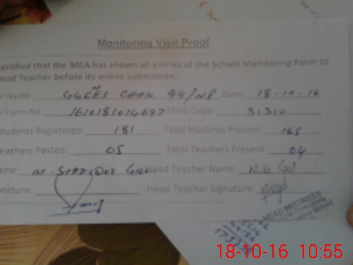 | EMIS Code: 31310562 | Name of School: GGES CHAK NO. 94/NP | |||