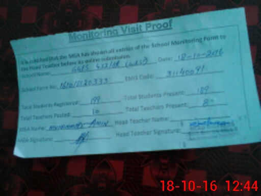 | Attendance Register | Head Teacher | MEA with School | Visit Proof |