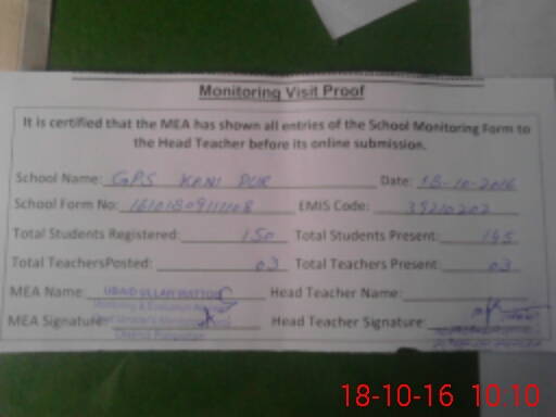 | EMIS Code: 39210202 | Name of School: GPS KANI PUR PO KUMAHARI WALA | |||
