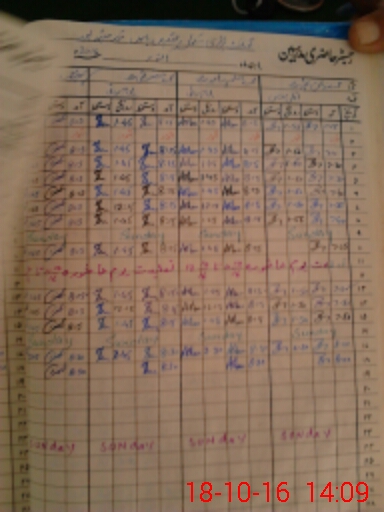 | CNIC | Full Name | Designation | R/C | Absence During Last Calender Month |