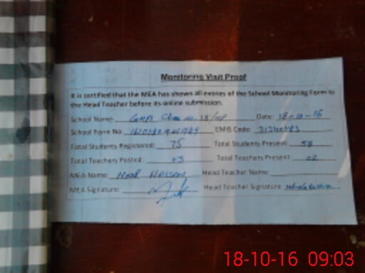 | EMIS Code: 31340483 | Name of School: GMPS 18 NP | |||