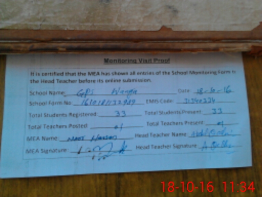 | Attendance Register | Head Teacher | MEA with School | Visit Proof |