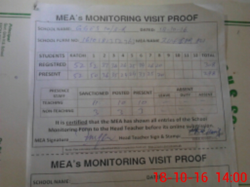 | Attendance Register | Head Teacher | MEA with School | Visit Proof |