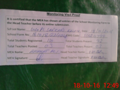 | Certified that this School was Inspected by the Undersigned MEA/DMO Today and the Information Stated Above is as Per Record. | |||||