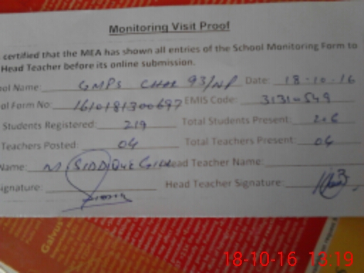 | EMIS Code: 31310549 | Name of School: GMPS CHAK NO. 93/NP (After Noon) | |||