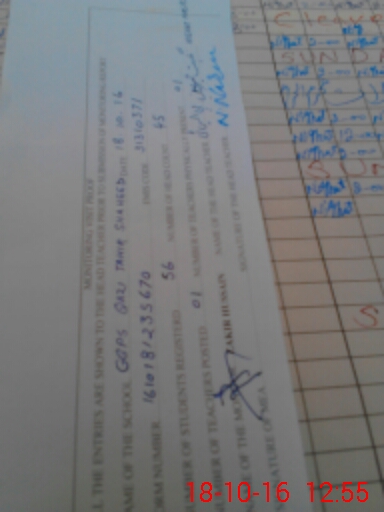 | Monitoring Date: 18-10-2016 | Start Time: 18-10-2016 12:35 PM | End Time: 18-10-2016 12:56 PM | Name of MEA: Za**** Hu**** | |