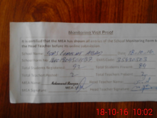 | EMIS Code: 35430503 | Name of School: GPS LIAQAT ABAD | |||