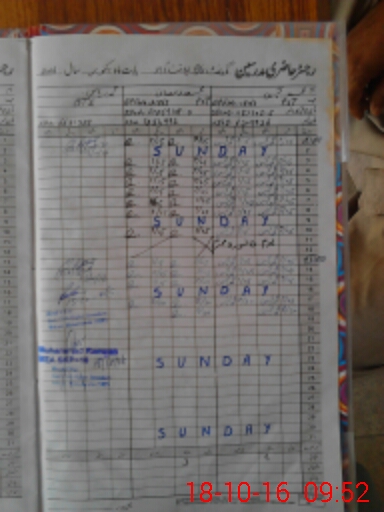 | CNIC | Full Name | Designation | R/C | Absence During Last Calender Month |