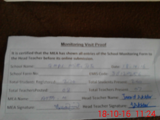 | Certified that this School was Inspected by the Undersigned MEA/DMO Today and the Information Stated Above is as Per Record. | |||||