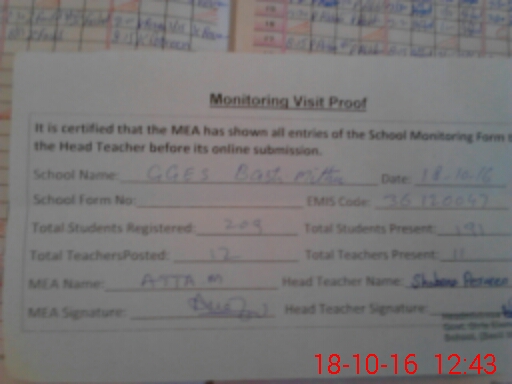 | Attendance Register | Head Teacher | MEA with School | Visit Proof |