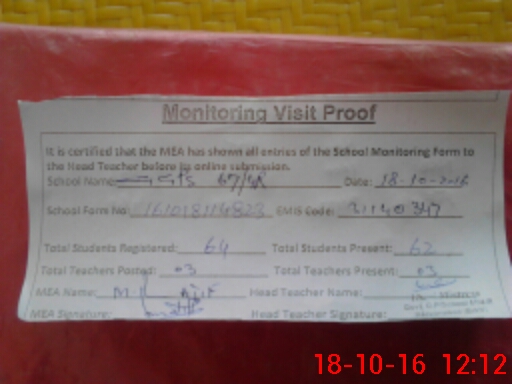 | Attendance Register | Head Teacher | MEA with School | Visit Proof |