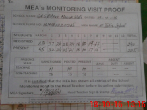 | Certified that this School was Inspected by the Undersigned MEA/DMO Today and the Information Stated Above is as Per Record. | |||||