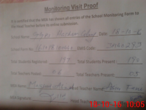 | EMIS Code: 31140293 | Name of School: GGPS HASHAM COLONY | |||