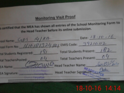 | Certified that this School was Inspected by the Undersigned MEA/DMO Today and the Information Stated Above is as Per Record. | |||||