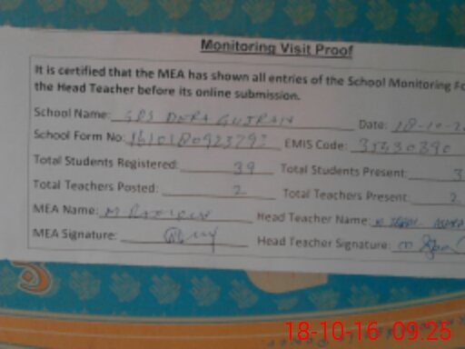 | EMIS Code: 35430390 | Name of School: GPS DERA GUJJRAN | |||