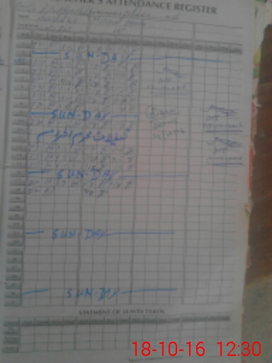 | CNIC | Full Name | Designation | R/C | Absence During Last Calender Month |