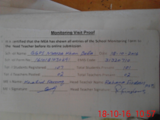 | EMIS Code: 31320710 | Name of School: GGPS MOUZA KHAN BELA | |||
