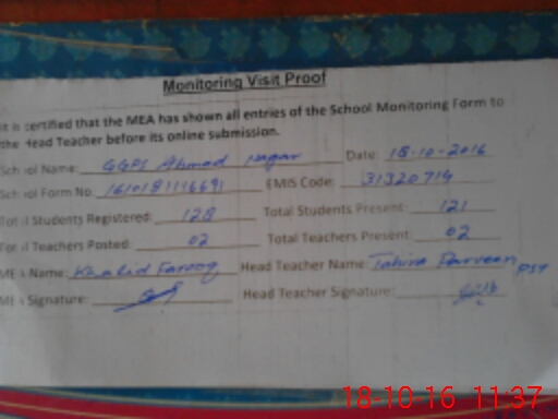 | EMIS Code: 31320714 | Name of School: GGPS AHMAD NAGAR | |||