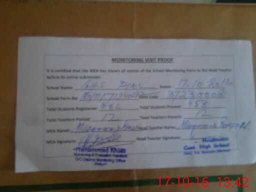| Certified that this School was Inspected by the Undersigned MEA/DMO Today and the Information Stated Above is as Per Record. | |||||