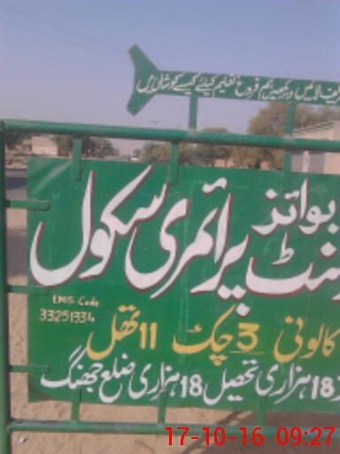 | EMIS Code: 33251334 | Name of School: GPS CHAK 11 THAL COLONY NO 3 | |||
