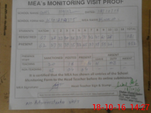 | Certified that this School was Inspected by the Undersigned MEA/DMO Today and the Information Stated Above is as Per Record. | |||||