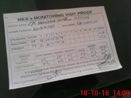 | Certified that this School was Inspected by the Undersigned MEA/DMO Today and the Information Stated Above is as Per Record. | |||||