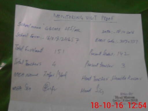 | Attendance Register | Head Teacher | MEA with School | Visit Proof |