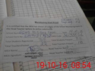 | Attendance Register | Head Teacher | MEA with School | Visit Proof |