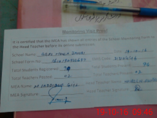 | EMIS Code: 31310446 | Name of School: GGPS MOZA JAHANGI | |||