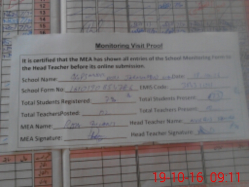 | Attendance Register | Head Teacher | MEA with School | Visit Proof |