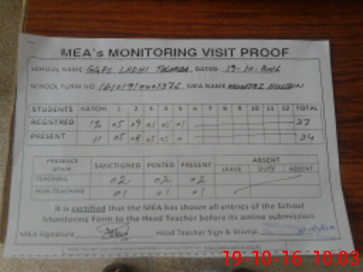 | EMIS Code: 36430370 | Name of School: GGPS LADHI, TULAMBA | |||